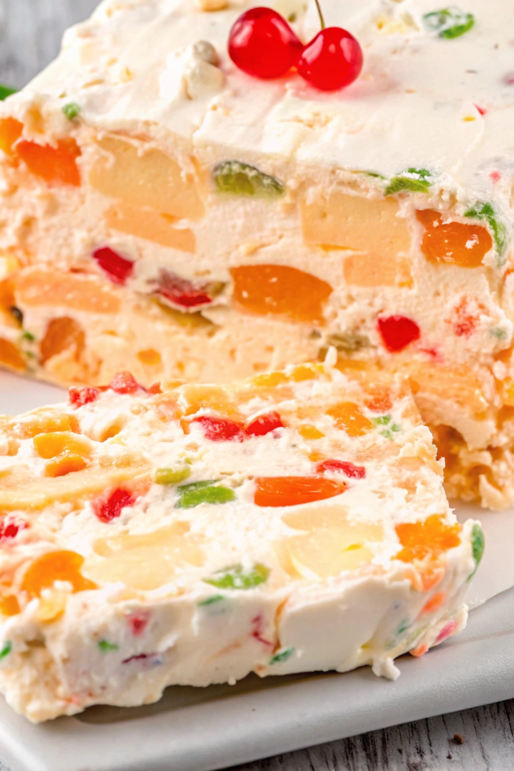 - Incorporate the chopped pecans and halved maraschino cherries into the mixture, ensuring even distribution.
