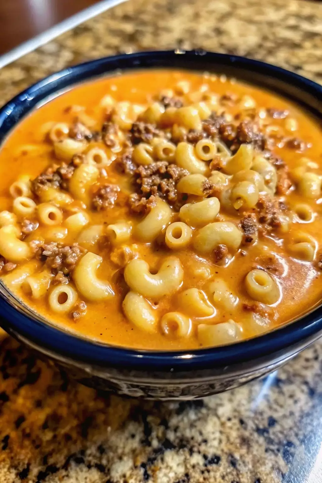 When the weather gets chilly and you’re craving something hearty and comforting, this One-Pot Macaroni Cheeseburger Soup is the answer. It’s the perfect fusion of two beloved comfort foods — cheeseburgers and macaroni and cheese — all in one creamy, cheesy, and satisfying soup. With tender macaroni, juicy ground beef, and a rich cheese sauce, this soup is sure to become a family favorite.