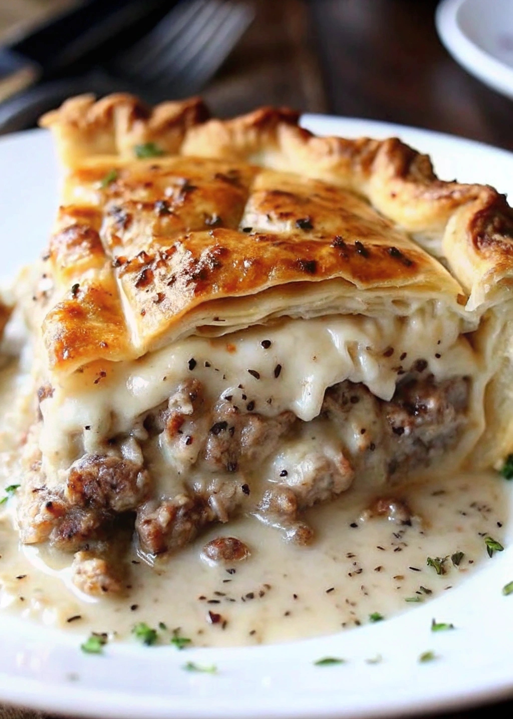 Sausage, Gravy, and Biscuit Pie